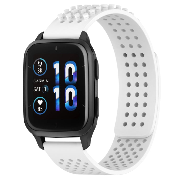 Correa de Reloj de Silicona para Garmin Forerunner Sq2 con Puntos 3D Transpirables y Orificios 20mm (Blanco)