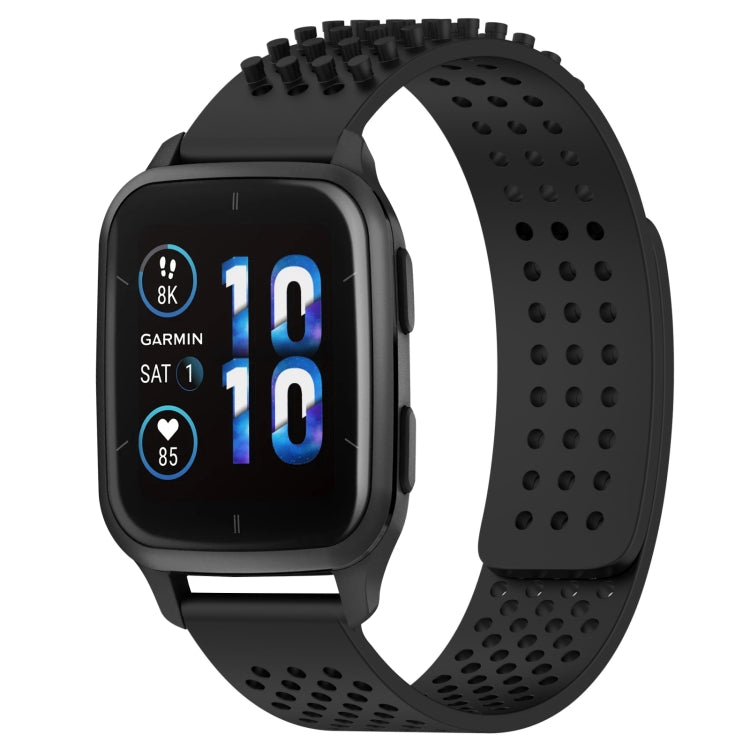 Correa de Reloj de Silicona para Garmin Forerunner Sq2 con Puntos 3D Transpirables y Orificios de 20mm (Negro)