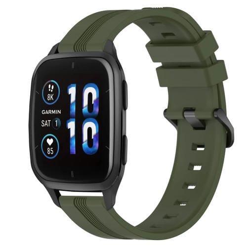 Banda de Reloj de Silicona para Garmin Forerunner Sq2 Music 20mm Cóncava a Rayas (Verde Militar)