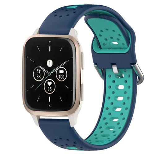 Banda de Reloj para Garmin Forerunner Sq2 Music 20mm Silicona Transpirable Dos Colores (Azul + Verde Azulado)