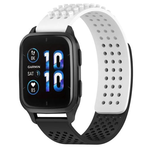 Correa de Silicona para Garmin Forerunner Sq2 Music 20mm con Puntos 3D Transpirables (Blanco + Negro)