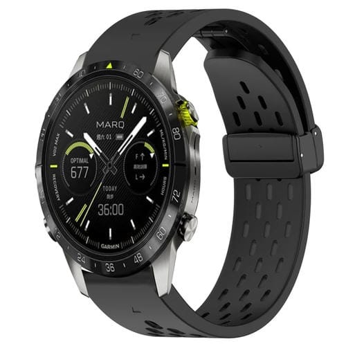 Correa de Silicona para Garmin Marq Athlete Gen 2 con Orificio y Hebilla Plegable 22mm (Negro)