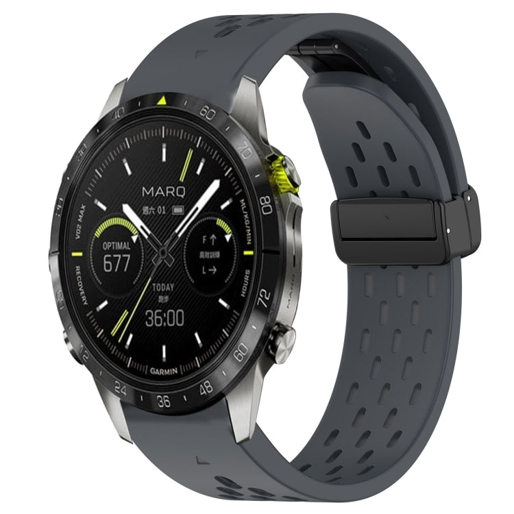 Correa de Reloj Garmin Marq con orificios de liberación rápida y hebilla magnética de silicona (Gris Oscuro)