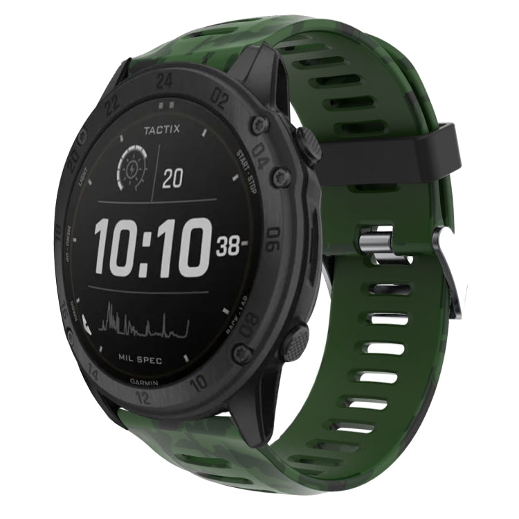 Correa de Reloj Garmin Tactix Delta 26mm Silicona Estampado Camuflaje (Verde Militar + Militar)