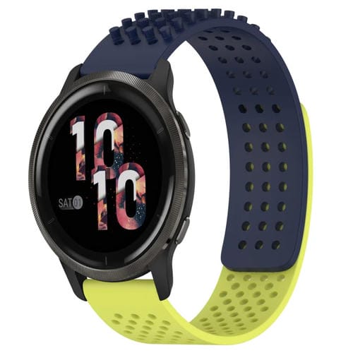 Correa de Reloj para Garmin Venu 2 de Silicona Transpirable con Puntos 3D y Orificios 22mm (Azul Medianoche + Verde Lima)