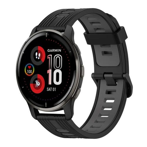 Banda de Reloj de Silicona para Garmin Venu 2 Plus 20mm (Negro+Gris)