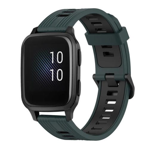 Banda de Reloj Silicona Garmin Venu Sq 20mm Patrón Vertical Dos Colores (Verde Oliva + Negro)