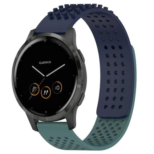 Correa de Reloj silicona para Garmin Vivoactive 4 con puntos 3D transpirables y orificios 22mm (Azul Medianoche + Verde Oliva)