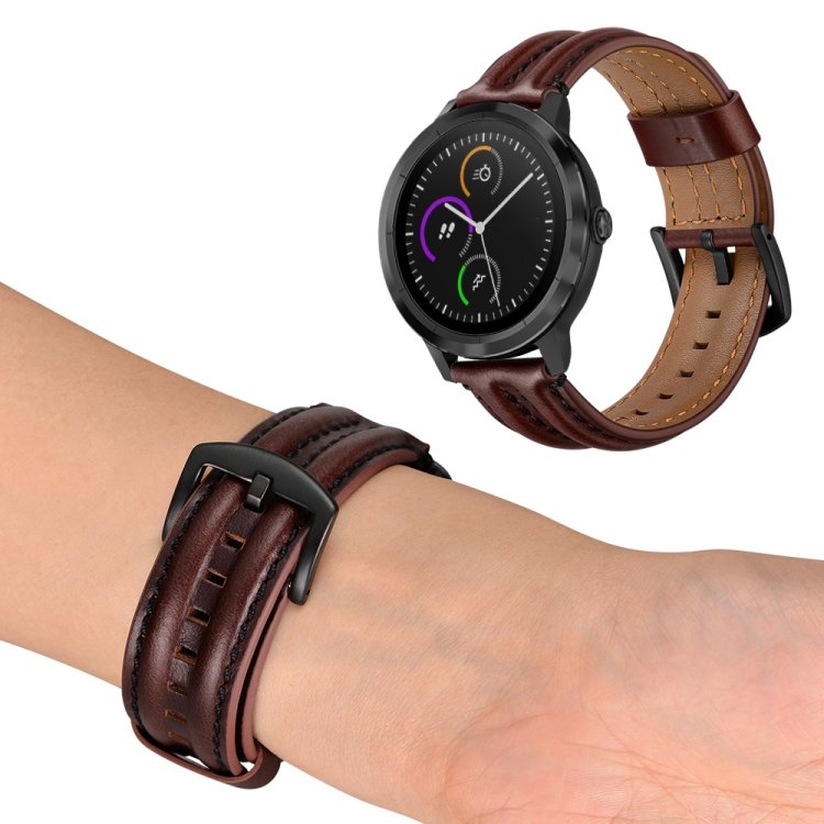 Band de Reloj de Doble Quilla para Garmin Vivoactive3 y Vivomove Hr (Aceite de Palma Oscura)