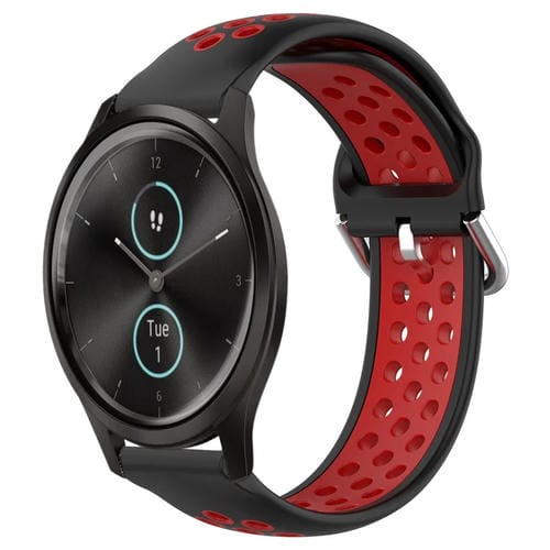 Banda de Reloj de Silicona Deportiva para Garmin Vivomove Style 20mm Perforada (Negro + Rojo)