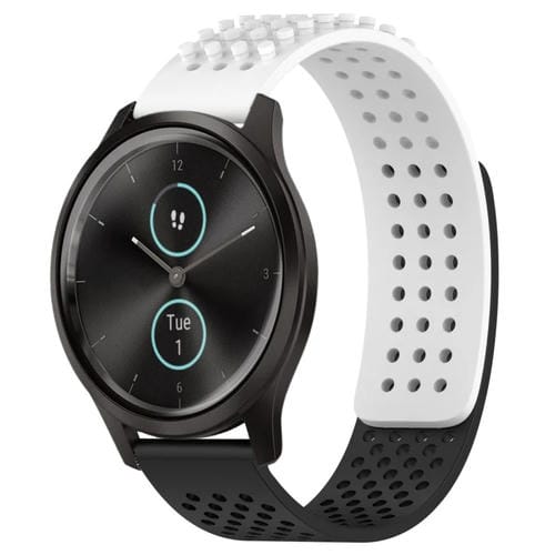 Correa de Silicona para Garmin Vivomove Style con Puntos 3D Transpirables y Orificios 20mm (Blanco + Negro)