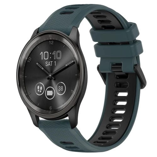 Correa para Garmin Vivomove Trend 20mm Silicona Deportiva Bicolor (Verde Oliva + Negro)