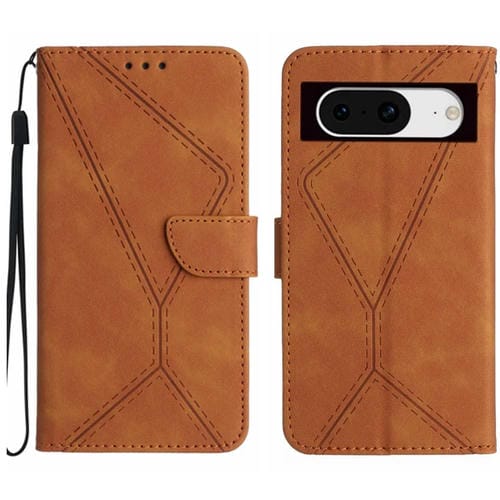 Funda de Cuero para Google Pixel 8A con Costuras en Relieve (Marrón)