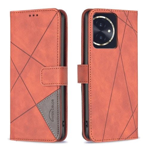 Funda para Honor 100 de Cuero con Textura de Rombo y Hebilla Magnética (Marrón)