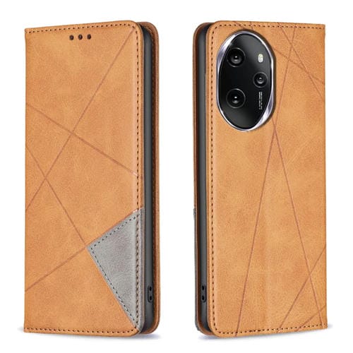 Funda de Teléfono Cuero Magnético para Honor 100 Pro con Textura Rombo (Amarillo)
