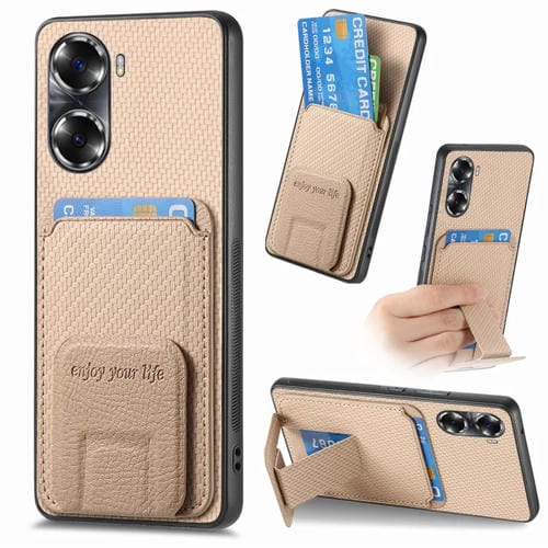 Funda para Honor 60 Pro con Soporte Plegable y Bolsa para Tarjetas de Fibra de Carbono (Caqui)