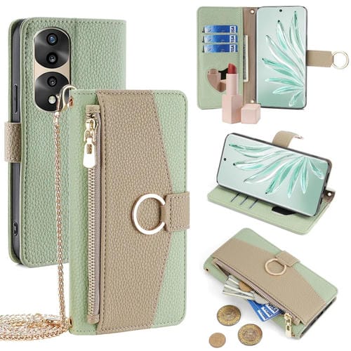 Funda para Honor 70 Pro y 70 Pro+ de Cuero con Textura Litchi Cruzada (Verde)