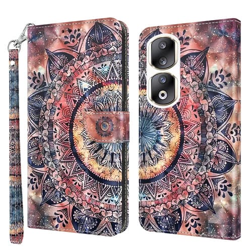 Funda de Cuero para Honor 90 Pro Pintada en 3D Mandala Colorida
