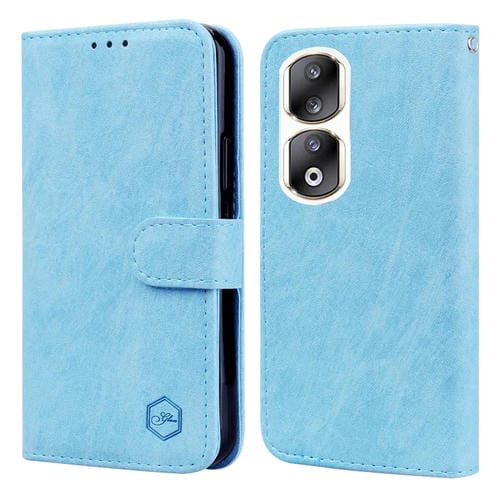 Funda para Honor 90 Pro Skin Feeling Oil Leather Texture PU + TPU (Azul Claro)