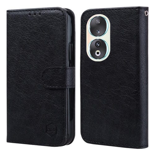 Funda para Honor 90 Skin Feeling Oil Textura de Cuero PU + TPU (Negro)