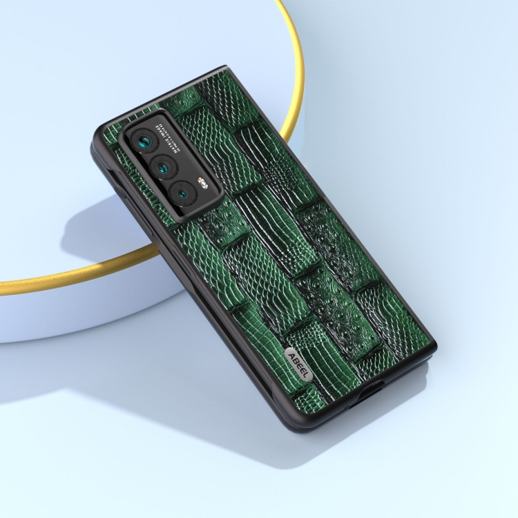 Funda para Honor Magic Vs2 Abeel Cuero Genuino con Patrón Mahjong y Borde Negro (Verde)