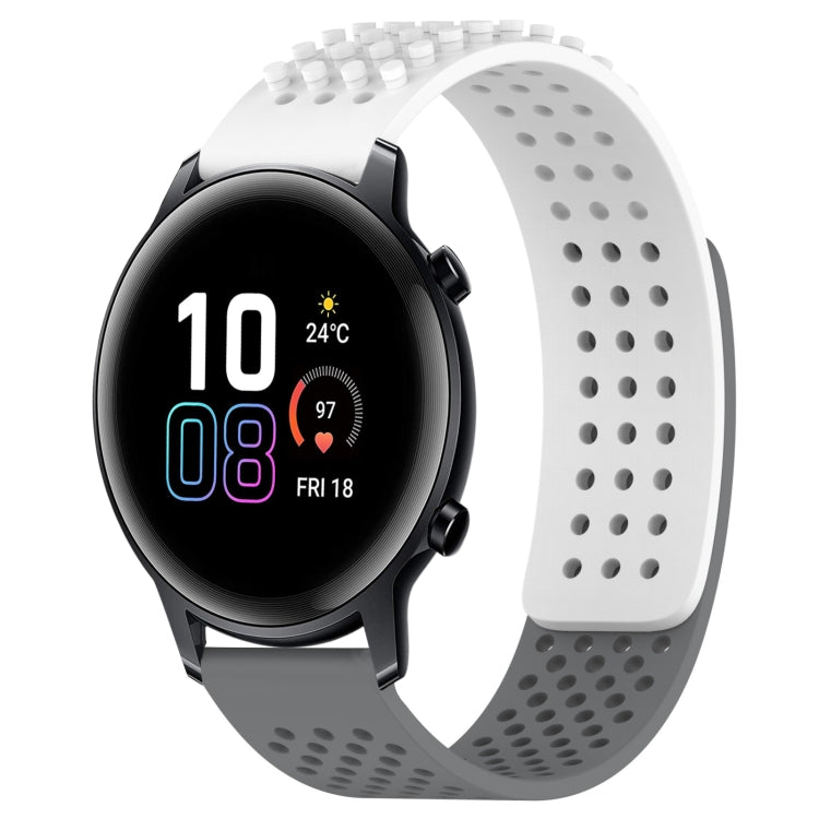 Correa de Silicona para Honor Magicwatch2 42mm y 20mm con Puntos 3D Transpirables (Blanco + Gris)