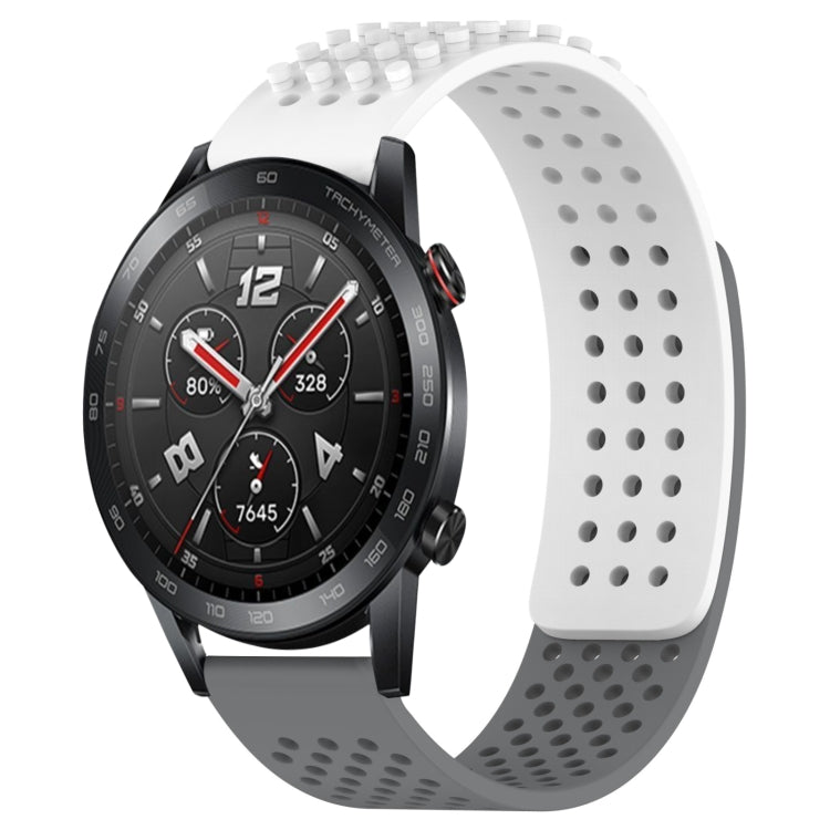 Correa de Silicona para Honor Watch GS 3I con Puntos 3D Transpirables y Orificios de 22mm (Blanco + Gris)