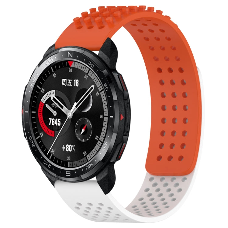 Correa de Silicona para Honor Watch GS Pro con Puntos 3D Transpirables y Orificios 22mm (Naranja + Blanco)
