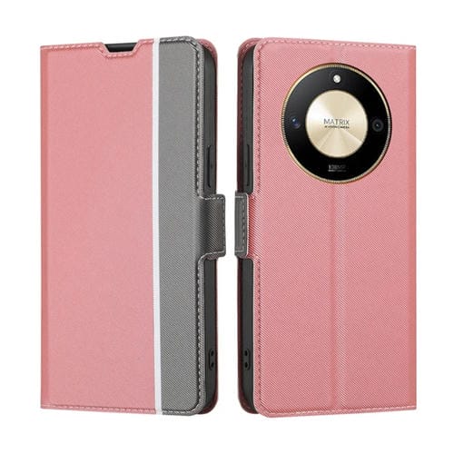 Funda de Cuero para Honor X50 5G con Botón Lateral y Textura de Sarga (Rosa)