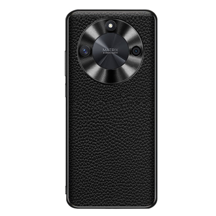 Funda para Honor X50 con Textura Litchi de Cuero Genuino (Negro)