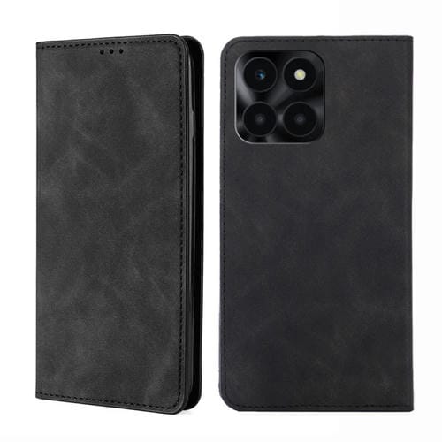 Funda de Cuero Magnética para Honor X6A 4G Skin Feel para Teléfono (Negro)