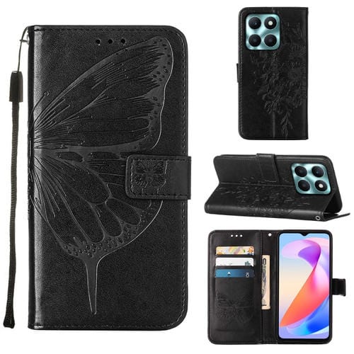 Funda de Cuero para Honor X6A con Mariposa en Relieve (Negro)