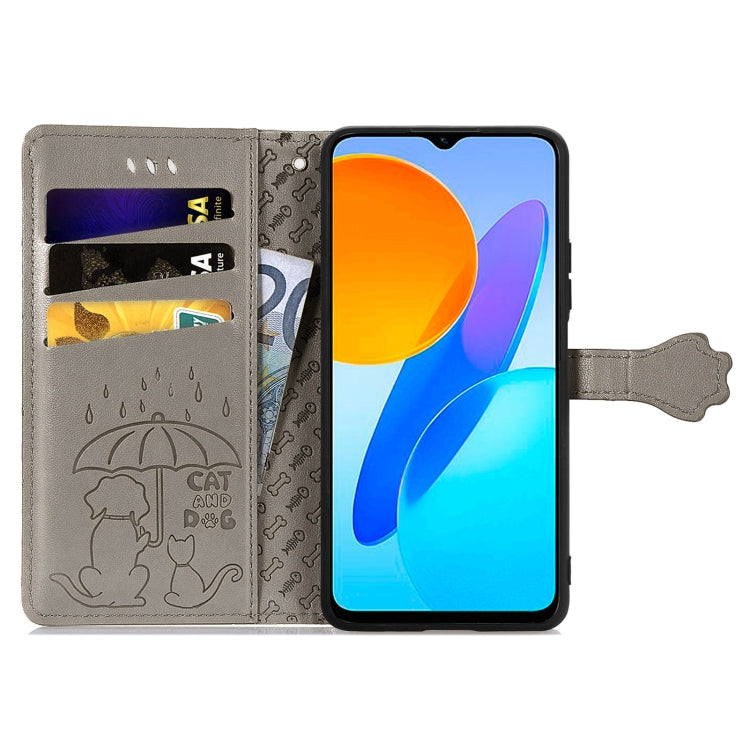 Estuche de Cuero para Honor X8 5G Cute Cat and Dog en Relieve (Gris)