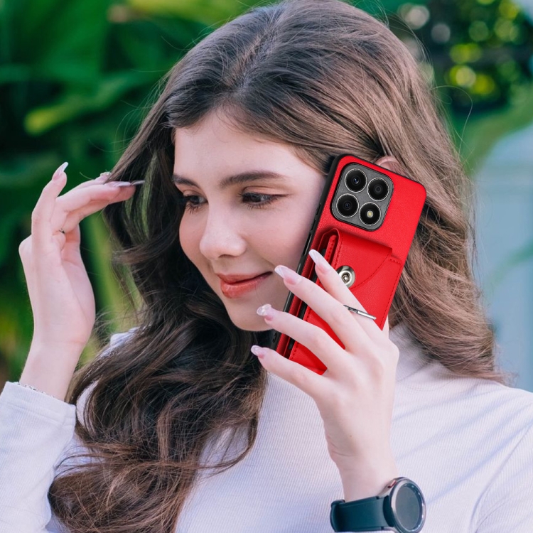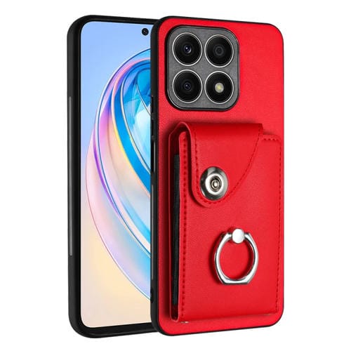 Funda para Honor X8A de PU con Soporte para Anillo y Bolsa para Tarjeta (Rojo)
