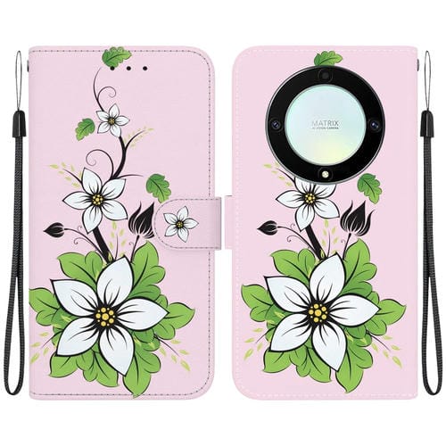 Funda para Honor X9A de Cuero con Dibujo Coloreado y Textura de Cristal (Lirio)