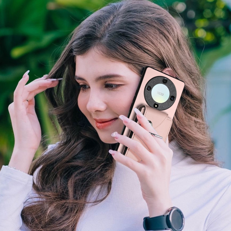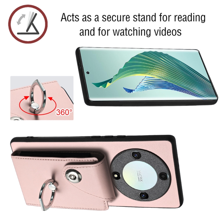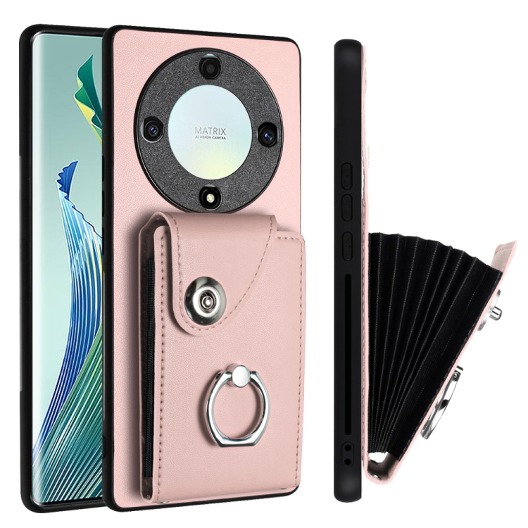 Funda para Honor X9A y Magic5 Lite de PU con Soporte para Anillo y Bolsa para Tarjeta (Rosa)