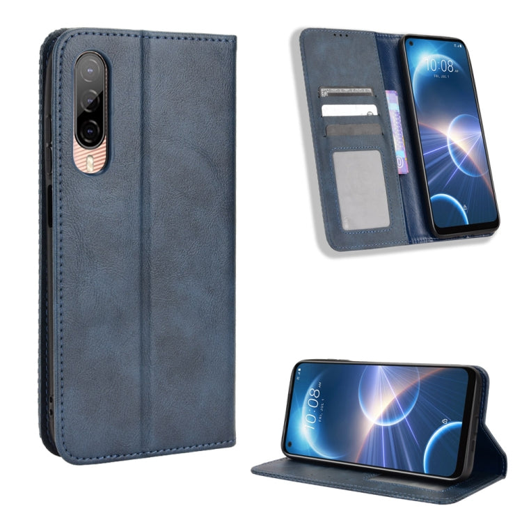 Funda de Cuero para HTC Desire 22 Pro con Hebilla Magnética y Textura Retro (Azul)