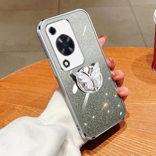 Funda TPU para Huawei Enjoy 70 con Soporte de Mariposa y Brillo Degradado (Plata)