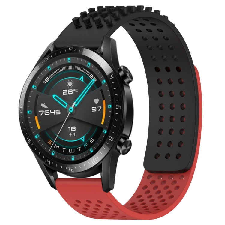 Correa de Reloj de Silicona para Huawei GT2 46mm 22mm con Orificios y Puntos 3D Transpirables (Negro + Rojo)