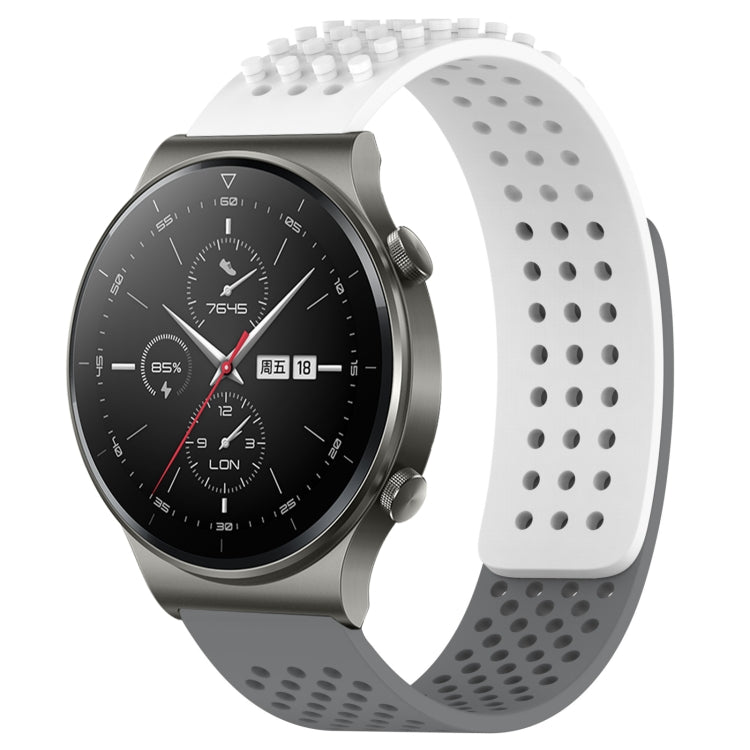 Correa de Silicona para Huawei GT2 Pro con Puntos 3D Transpirables y Orificios 22mm (Blanco + Gris)