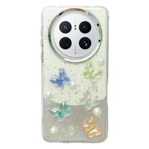 - 1x Estuche TPU para Huawei Mate 50 Pro con Mariposa de Cristal Colorido Tridimensional (Perla de Mariposa)