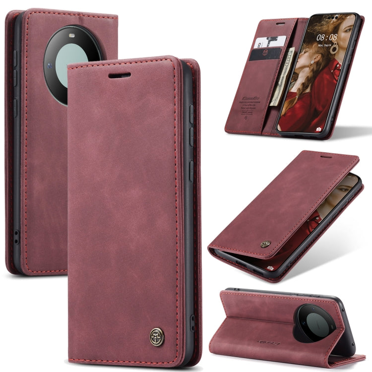 Funda de Cuero Caseme 013 para Huawei Mate 60 Pro y 60 Pro+ con Tapa Horizontal Multifuncional (Rojo Vino)
