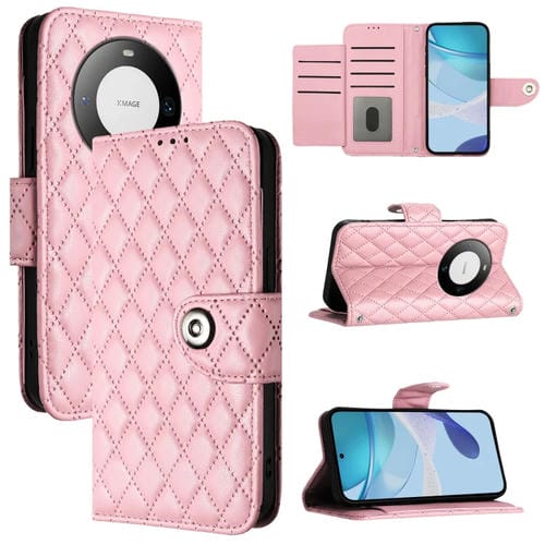 Funda para Huawei Mate 60 Pro / 60 Pro+ con Tapa de Cuero Textura Rómbica y Cordón (Rosa)