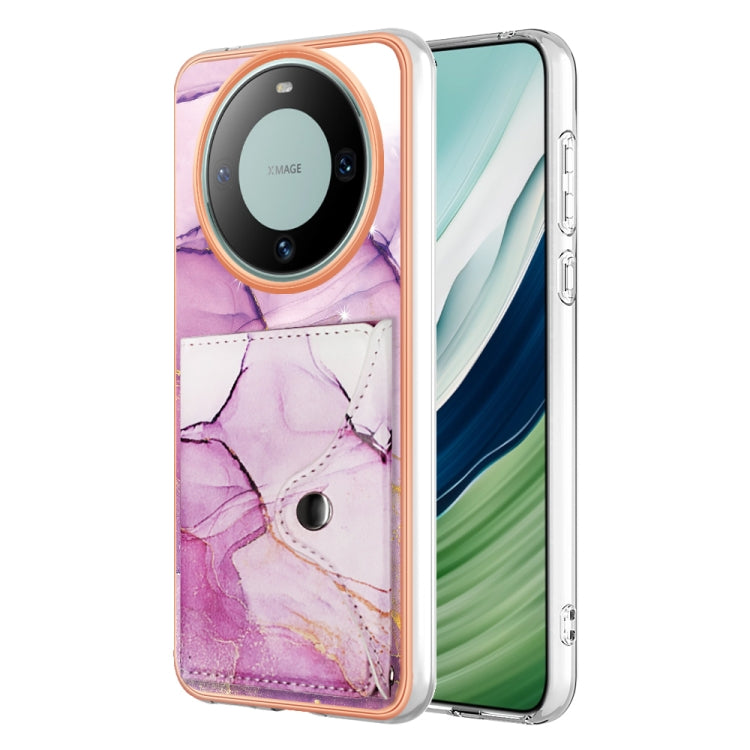 Estuche para Huawei Mate 60 Pro con Ranura para Tarjeta Imd y Patrón Mármol (Oro Rosa Púrpura)