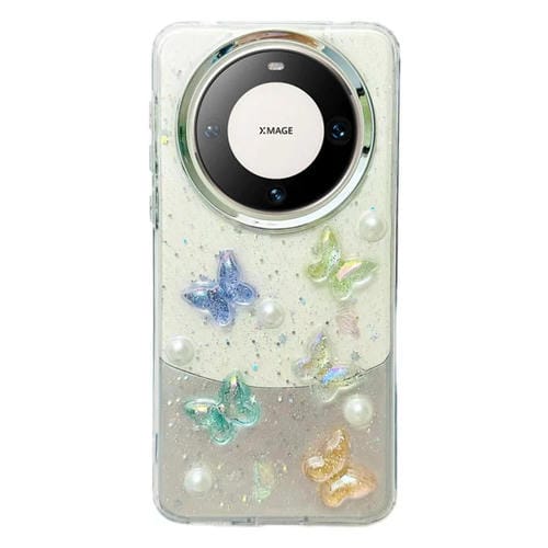 Estuche TPU para Huawei Mate 60 Pro con Mariposa de Cristal Colorido Tridimensional (Mariposa Perla)
