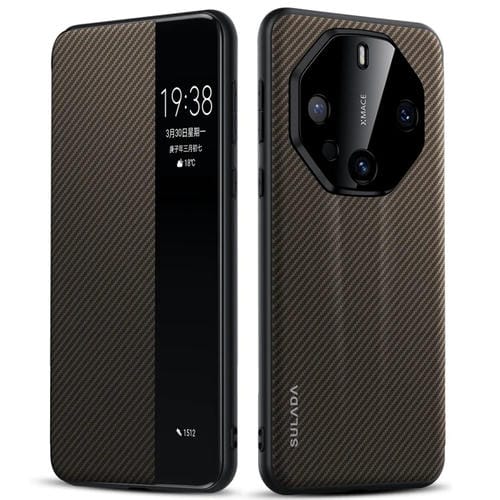 • 1x Funda de Cuero Huawei Mate 60 Rs Ultimate Sulada Kevlar 600D con Ventana Inteligente (Marrón)