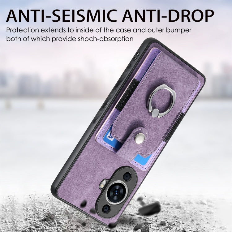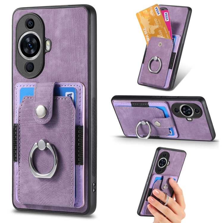 Funda para Huawei Nova 11 con Billetera, Tarjeta y Anillo, Piel Retro (Púrpura)