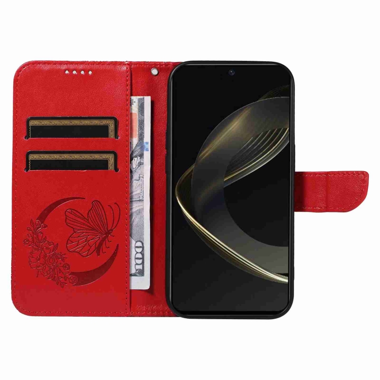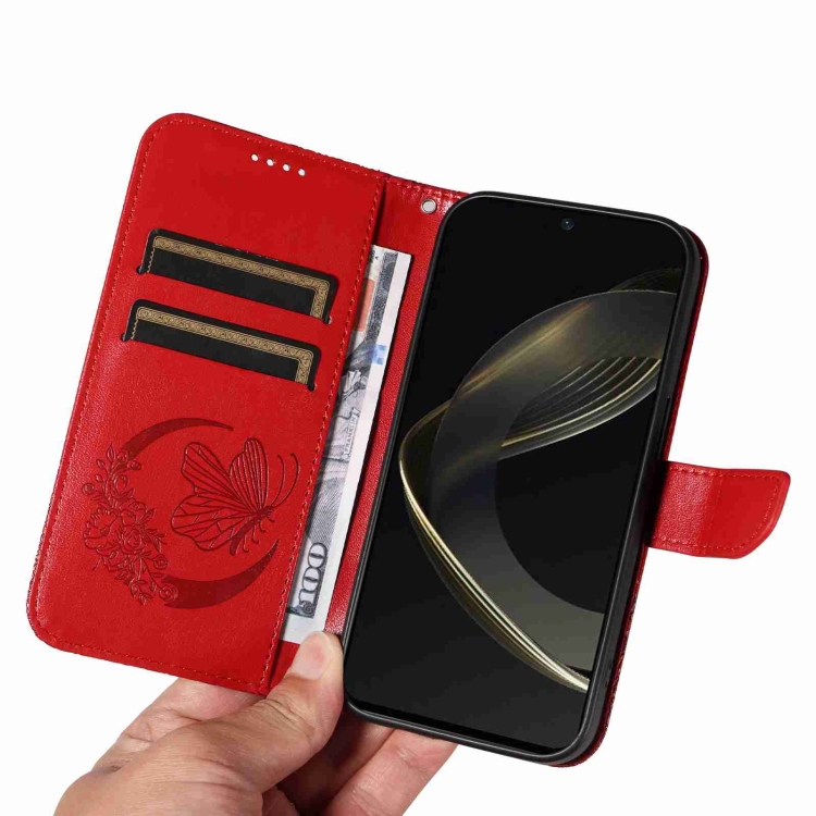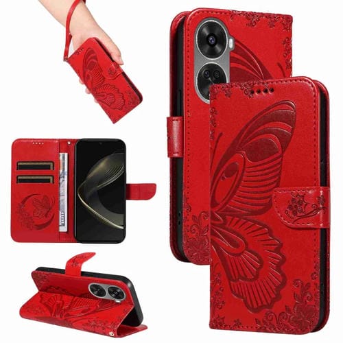 • 1x Funda para Huawei Nova 11 Se 4G de Cuero con Relieve Mariposa y Cola de Golondrina (Rojo)
