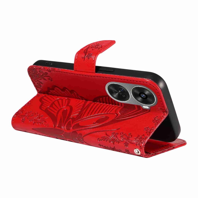 Funda para Huawei Nova 11 Se 4G de Cuero con Relieve Mariposa y Cola de Golondrina (Rojo)
