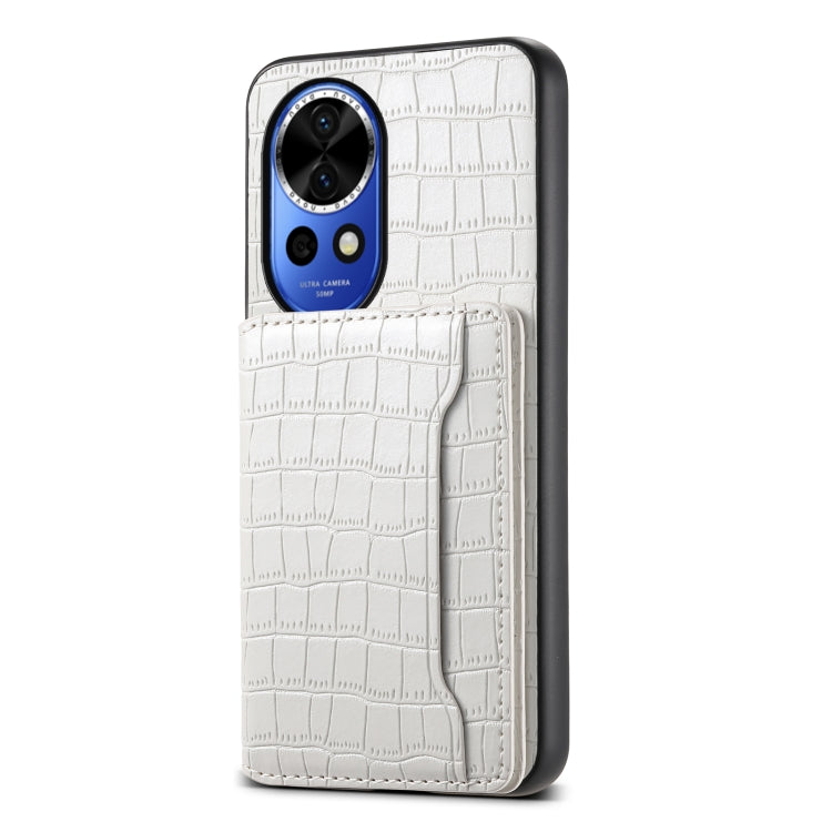 Estuche para Huawei Nova 12 con Diseño Bolsa para Tarjetas y Textura Cocodrilo (Blanco)